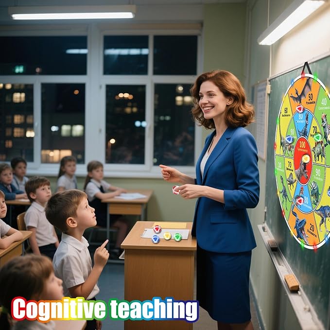 • Best gift choice for kids: It can make children and their friends happy for several hours, while improving various abilities such as mathematics, dinosaur recognition, color recognition, and hand-eye coordination. The dinosaur dartboard is the best gift for children aged 3, 4, 5, 6, 7, 8, 9, 10, 11 and 12.