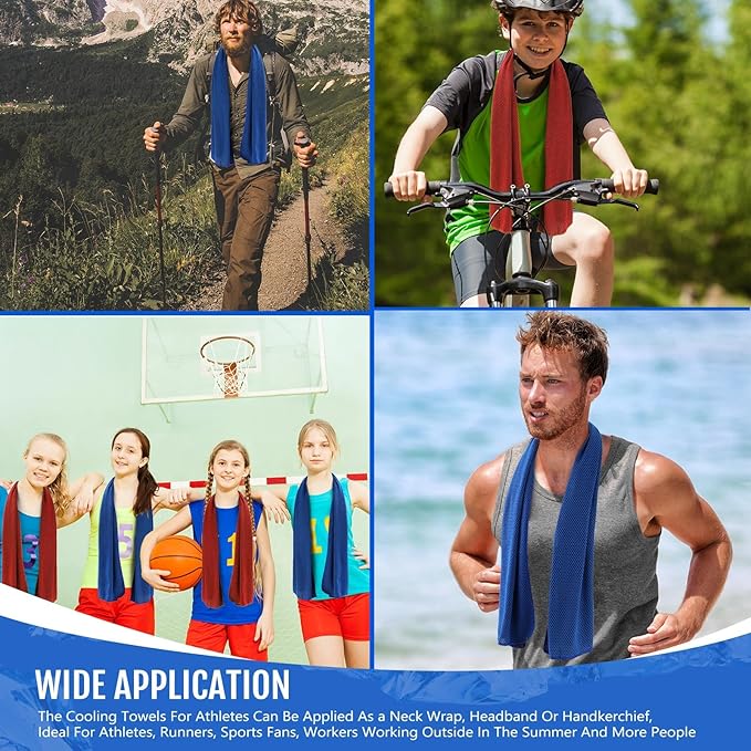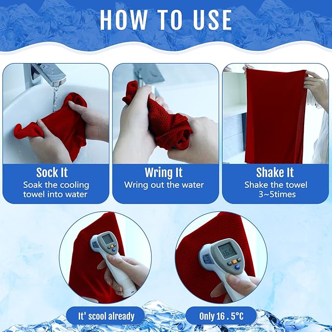 • Quick Cooling and Reusability: these bulk cooling towels are machine washable, the breathable mesh of cooling towels bulk allows you to easily activate the refrigerated towel by soaking, wringing and breaking; You can reuse these cooling towels for hot weather many times; The good cooling design can help to absorb sweat from your skin and keep you cool