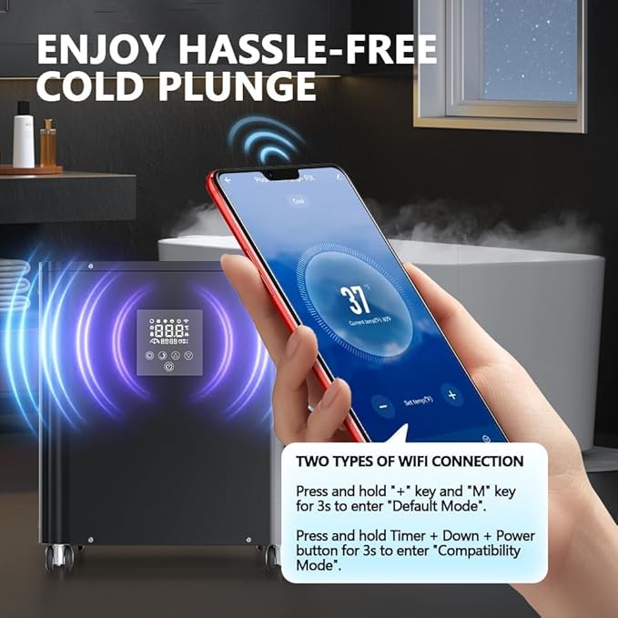 • Enjoy Hassle Free WIFI Remote Control: adjust the desired water temperature freely on your cell phone, and control the device's switch-on time in advance while taking the ice bath.