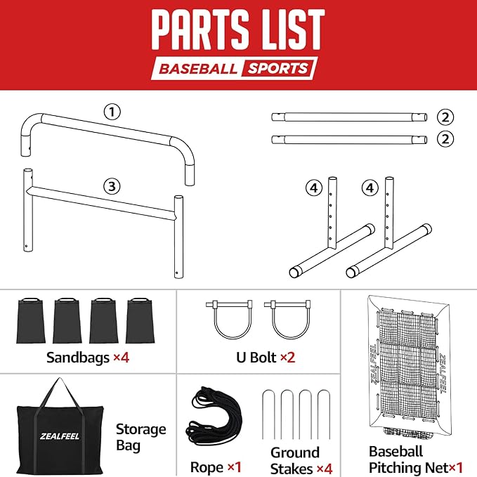 • 9-Hole Baseball Pitching Net: Control is the foundation of every pitcher. This training net features a realistic 18'' x 22'' strike zone and 9 individual target pockets that provide clear, visual feedback for every throw. It helps pitchers improve accuracy, consistency, and in-game decision-making. Perfect for baseball softball players of all ages and skill levels—no catcher required. Build rhythm and confidence from your very first pitch