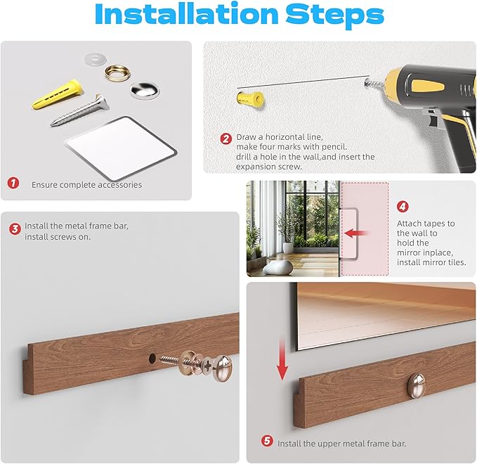 • Easy to Install:It's easy to install this wall gym mirror. Just check the instruction manual and do it step by step. It provides flexibility for different home and gym setups
