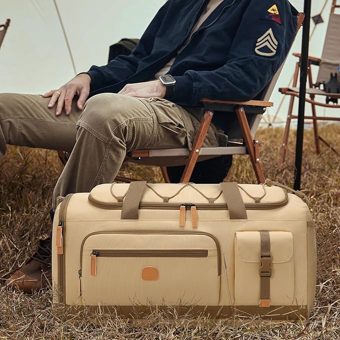 Gym Bag for Men and Women with Shoe & Laptop Compartment, 3-in-1 Sports Travel Duffel Bag Anti-Theft Weekender Carry-On Backpack for Airplane & Workout, Overnight Travel Bag,35L (Khaki, Medium)