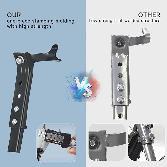 • 𝐓𝐡𝐢𝐜𝐤𝐞𝐧𝐞𝐝 20% 𝐇𝐢𝐠𝐡 𝐂𝐚𝐫𝐛𝐨𝐧 𝐒𝐭𝐞𝐞𝐥 4mm reinforced brackets (20% thicker than competitors) with anti-corrosion coating, supporting 300LB weight limit for adult riders and cargo bikes.