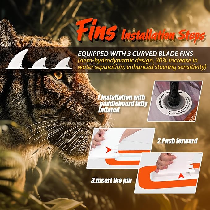 • 【Fins Fluid Reversing Flow Design】 Machete pin fins are designed with aero-hydrodynamic design, which improves the water splitting performance by 30%, reduces lateral resistance, enhances straight line stability and steering sensitivity.