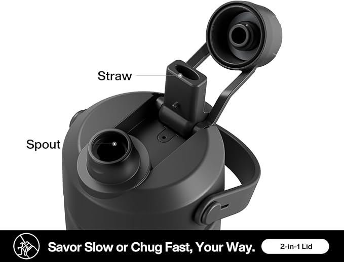 • 2-in-1 Leakproof Lid: Features a straw for easy sipping and a spout for effortless pouring or chugging; Toss it in your bag or car, offering no spills and endless thrills
