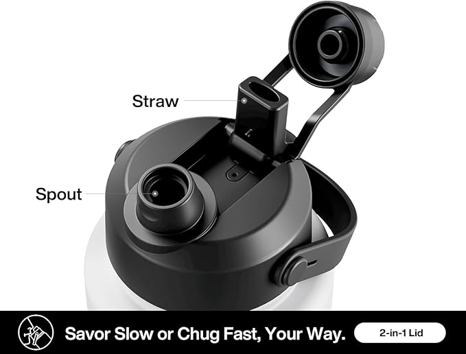 • Versatile 2-in-1 Lid: Features a straw for easy sipping and a spout for effortless pouring or chugging; simplifying beverage access whether it's a hot coffee or a cold drink