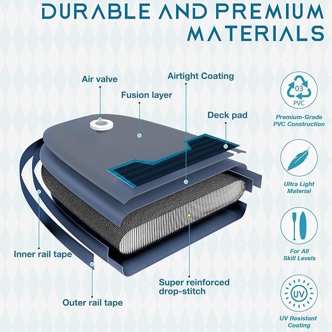 • 2. Crafted from military-grade materials, the AIR-STONE paddle board is ultra-light and durable. Enjoy a comfortable, non-slip EVA deck for safety and stability during your water activities.