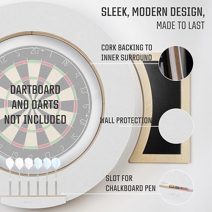 • Cork Backed Inner Surround: Below the white felt we have included a layer of cork to help catch stray darts