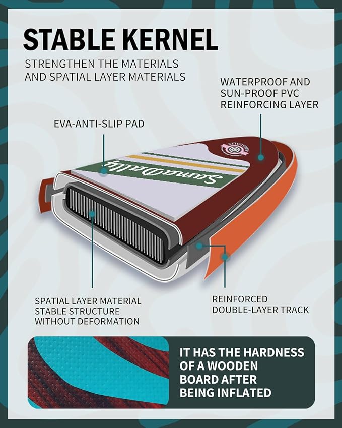 • Spacious & Enjoyable: SamaDally Candy Star series inflatable stand-up paddle boards are 1 to 2 inches wider than other similar products. 34in paddle surface is extremely spacious. Both beginners and paddleboards enthusiasts can find their own water - based fun on this SUP and enjoy a relaxing time.