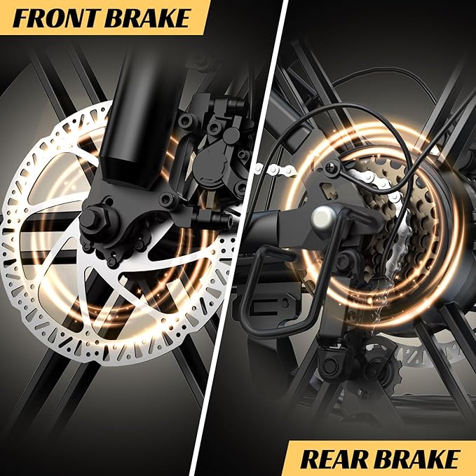 • Pro Safety Package: Dual hydraulic disc brakes deliver instant stopping power, while 360°LED lighting (headlight/brake light/turn signals) ensures night visibility. The full-suspension system absorbs bumps for ultra-smooth rides on rough terrain