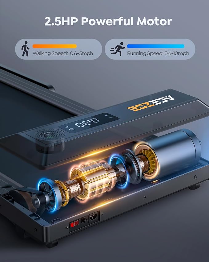 • 【No Assembly, Easy Storage】Designed for small spaces, compact treadmill comes fully assembled and features built-in transport wheels for easy movement. You can store it under a bed, sofa, or in a corner when not in use. Perfect for home or office fitness! Acezoe offers 24/7 service, 2-year protection and lifetime technical support. Any problem please contact our after-sale email.