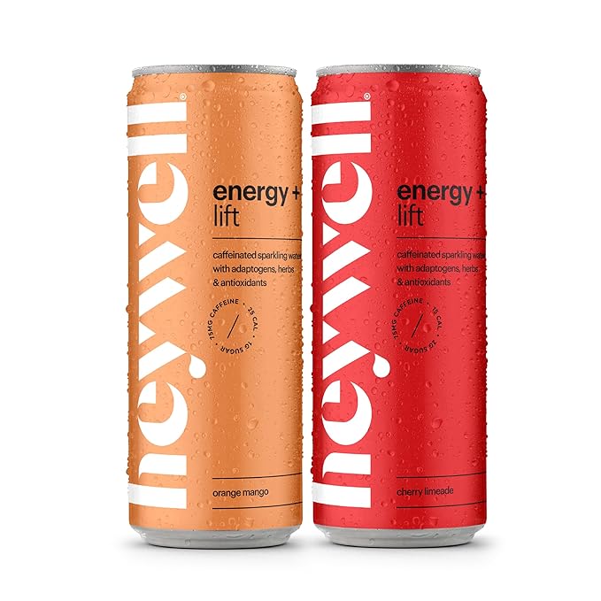 • VARIETY PACK – Cherry Limeade & Orange Mango This Heywell variety pack includes two refreshing flavors designed to support energy, focus, immunity, and stress relief. Lightly sparkling with just 10 calories and 1g sugar, these adaptogen drinks are made with organic ingredients, electrolytes, and are Non-GMO, Vegan, Gluten Free, and alcohol-free—perfect as a functional mocktail or daily boost.