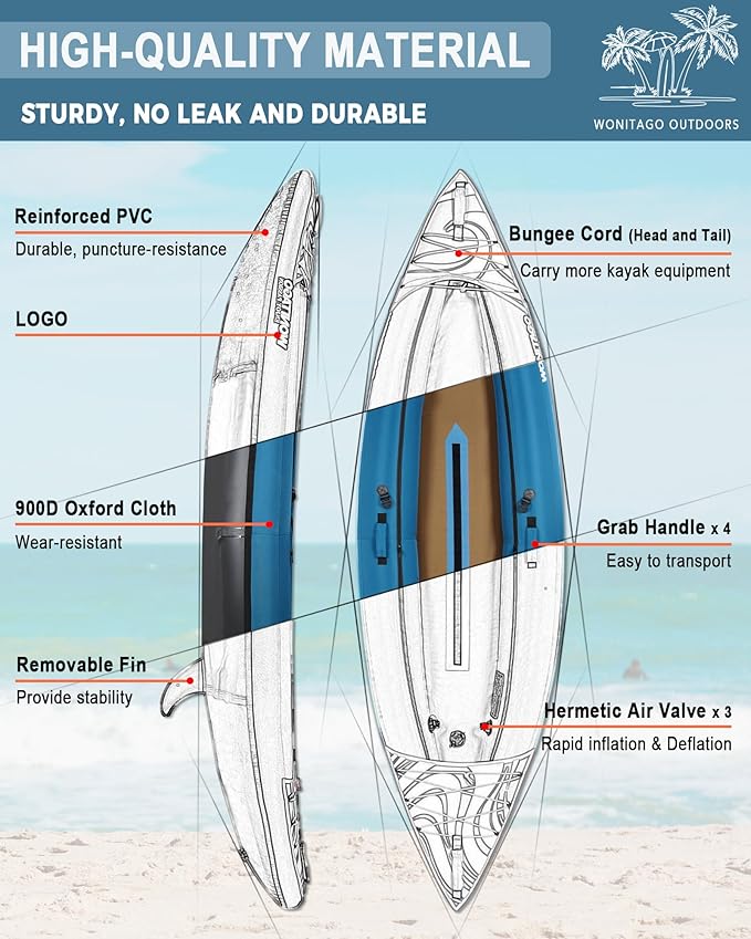 • MUST HAVE FOR OUTDOOR ENTHUSIASTS ---Choose WONITAO, enjoy a happy journey of water sports with your family, whether you're exploring the coast, racing down a river, or enjoying a peaceful lake, our kayaks are the perfect choice for your next adventure