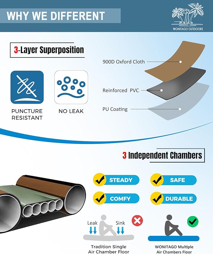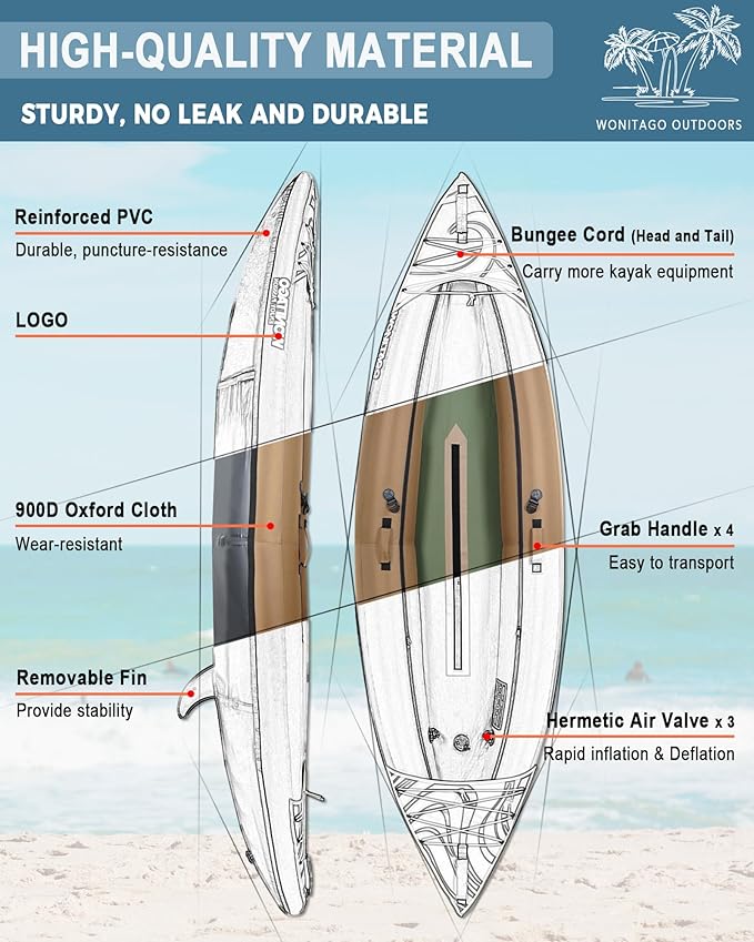 • MUST HAVE FOR OUTDOOR ENTHUSIASTS ---Choose WONITAO, enjoy a happy journey of water sports with your family, whether you're exploring the coast, racing down a river, or enjoying a peaceful lake, our kayaks are the perfect choice for your next adventure