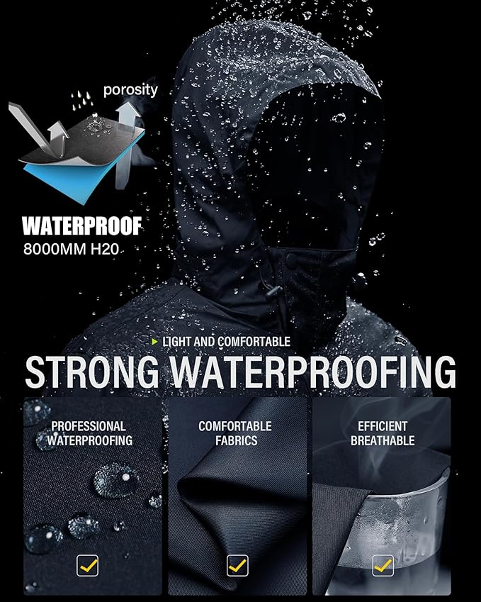 • Multipurpose: This waterproof rain jacket with hood is a great gear for your outdoor activities. It is perfect for outdoor work, traveling, cycling, hiking, climbing, fishing, camping, hunting and for daily wear