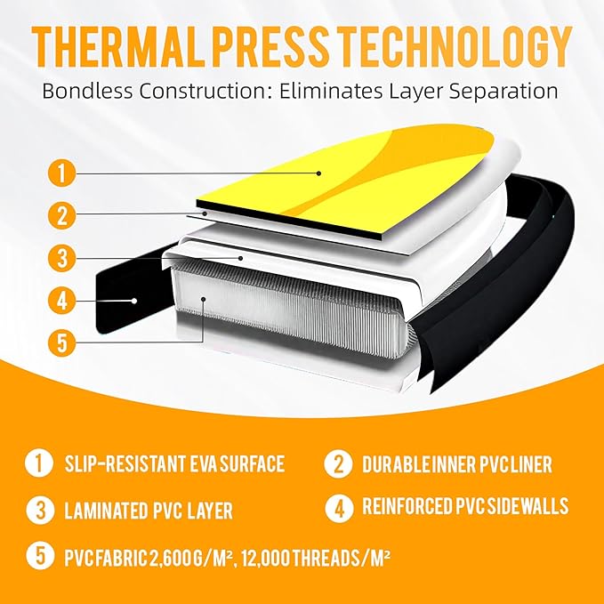 • 【Dual-Reinforced PVC & Barefoot Confidence】Crafted with 2mm-thick lightweight PVC, this inflatable board balances effortless portability with layered puncture protection. The textured EVA deck prevents slips during ocean yoga/fishing.