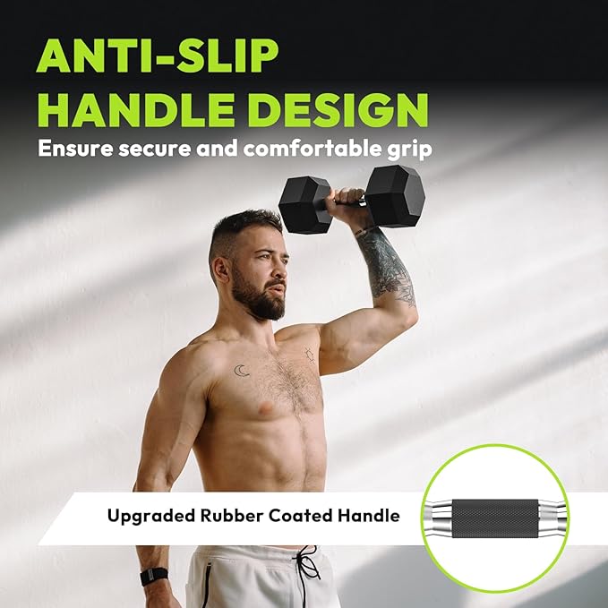 • Hexagonal Design for Stability & Practical Storage: The unique hexagonal shape prevents the dumbbells from rolling, providing a stable base during workouts. This design also makes storage easy and convenient, adding practicality to your fitness routine.