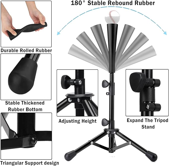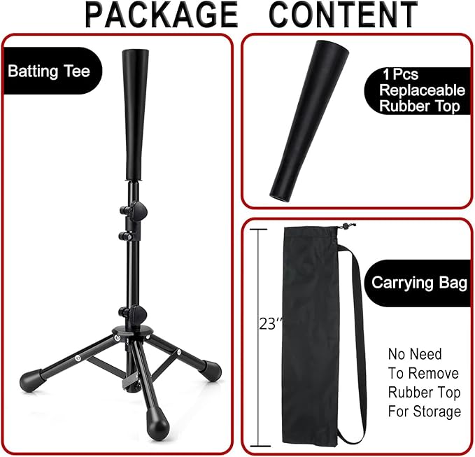 • 【Baseball Softball Tee Kit】Our baseball training tee set includes a 1set x black tripod Tee, 1 x flexible rubber and 1 x carry bag. softball hitting tee is available in black and red for you to choose.
