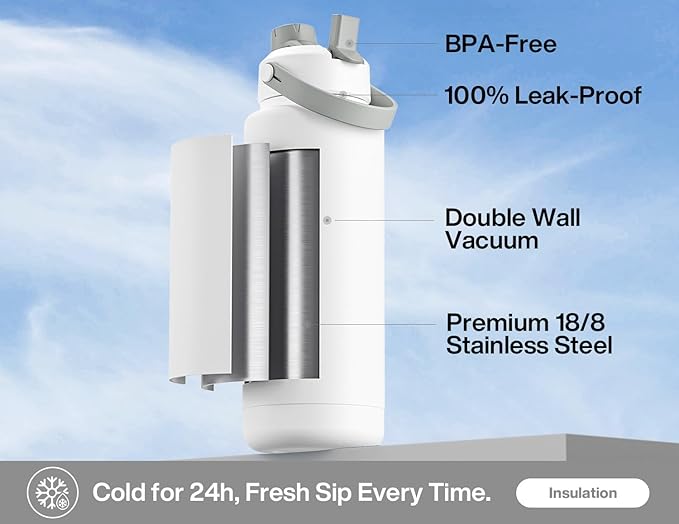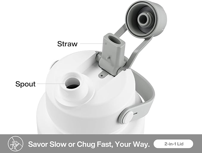 • 2-in-1 Leakproof Lid: Features a straw for easy sipping and a spout for effortless pouring or chugging; Toss it in your bag or car, offering no spills and endless thrills