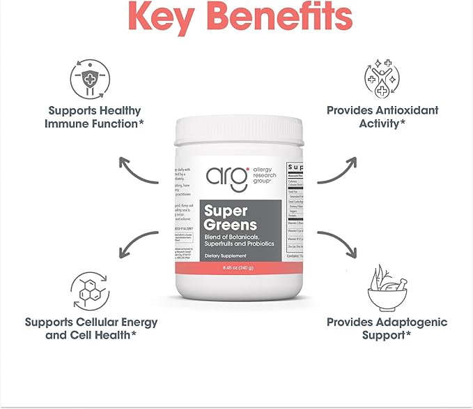 Allergy Research Group Super Greens - Superfood Green Powder with Spirulina, Chlorellla and Oat Grass, Clinically-Studied Probiotic Support for Women and Men - 8.45 oz (240 g)