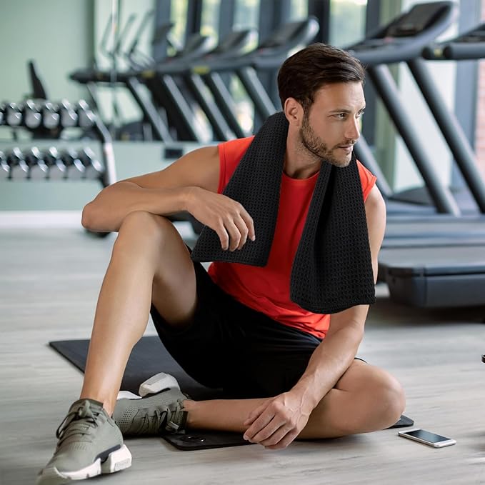 Microfiber Gym Towels for Working Out, Quickly Dry Yoga Towels for Men & Women Tennis, 16 Inch x 27 Inch, 6 Pack, Black