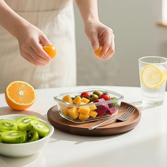 • PREMIUM BOROSILICATE GLASS: Made from high quality borosilicate glass, these glass food storage containers are safe for use in the oven, microwave (without lids), and freezer, making them convenient for daily cooking and reheating needs.