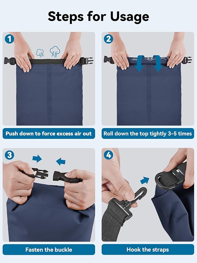 • Multifunctional - Equipped with adjustable shoulder straps for shoulder carrying and backpack, our dry bag is very convenient for different occasions like boating, rafting, kayaking, hiking, camping, fishing, mountaineering, etc. The lightweight dry bag won't weigh down your arms or shoulders