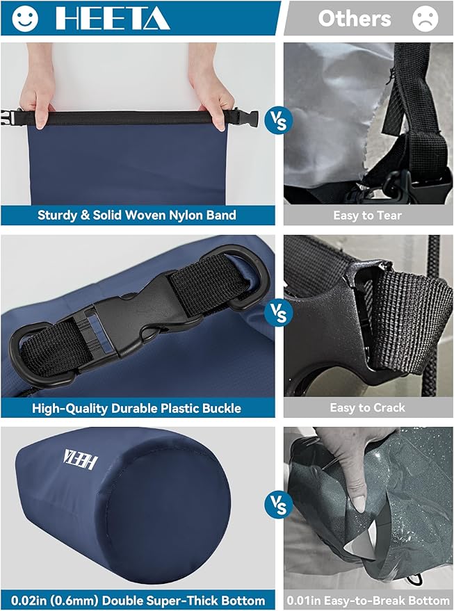 • Durable - Made of 0.02 in (0.5 mm) thick upgraded wear-resistant PVC material, it's suitable for all kinds of outdoor activities. Waterproof bag is well adapted to various weather and environment
