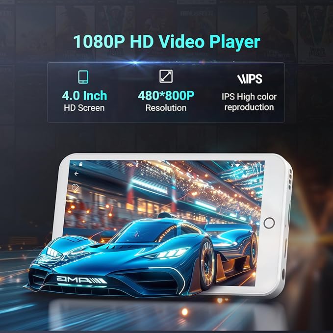 • 【Excellent Visual for MP4 Player】This wifi MP4 player boasts a 4-inch HD touchscreen with exceptional screen resolution, which make every detail of your favorite movies, videos and photos will be brought to life with crystal clear clarity. Supports video formats as RM、RMVB、FLV、MP4、DAT、MKV、MPG、MOV、TS and so on, can be played directly without conversion, which bring you an unparalleled viewing experience.