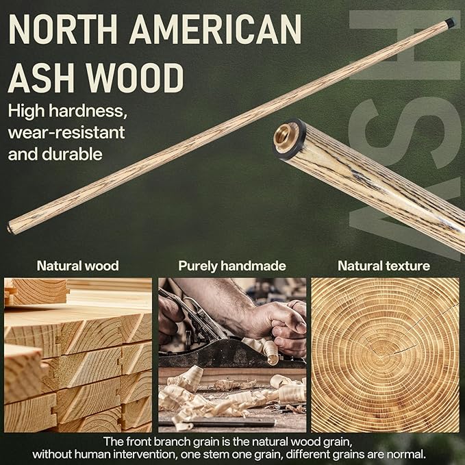 • Material: The forelimb of the pool cue is made of high-quality North American ash wood, which has been treated with black technology, making it harder than ordinary wood, straighter and less likely to bend