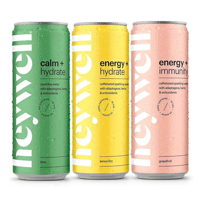 • VARIETY PACK – Lime, Lemon Fizz & Grapefruit Flavor This Heywell variety pack includes two refreshing flavors designed to support energy, focus, immunity, and stress relief. Lightly sparkling with just 10 calories and 1g sugar, these adaptogen drinks are made with organic ingredients, electrolytes, and are Non-GMO, Vegan, Gluten Free, and alcohol-free—perfect as a functional mocktail or daily boost.