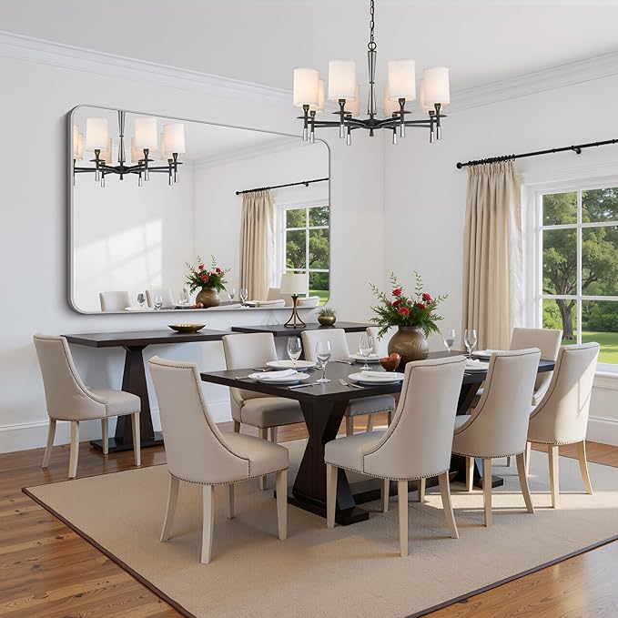 • Elegant Rounded Corners & Premium Safety: Featuring a sleek silver metal frame with softly contoured rounded corners. This sophisticated design combines modern elegance with enhanced safety, eliminating sharp edges while adding a luxe minimalist finish. The rich black frame elevates any decor, creating a visually expansive effect that brightens spaces and amplifies the sense of openness.