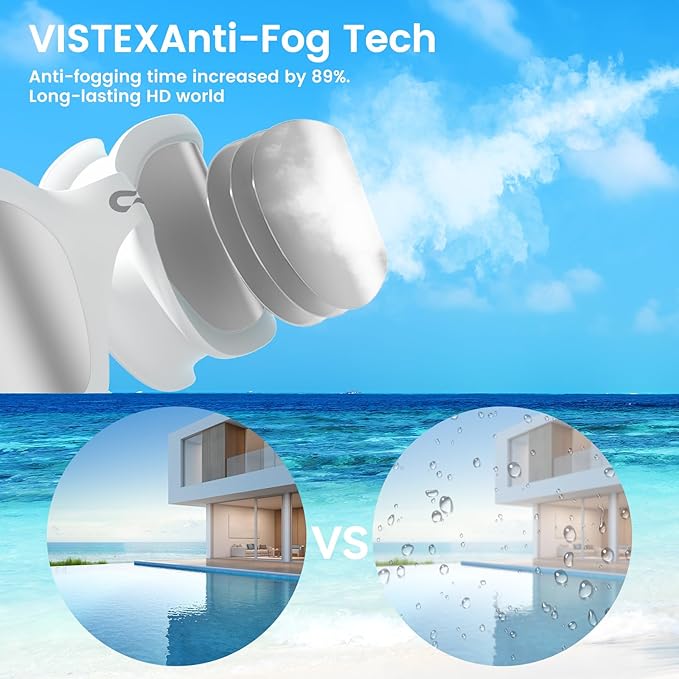 • [VISTEX Anti-Fog Tech]: Our adult swim goggles feature VISTEX Anti-Fog Technology, which increases anti-fogging time by an impressive 89%. With our pool goggles, you can say goodbye to annoying fogging that obscures your vision and hampers your swimming performance. Whether you're swimming in a heated indoor pool or a cold outdoor lake, our adult swim goggles for women will keep your vision crystal clear.
