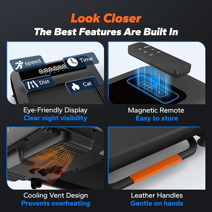 • 【Multi-Zone Cushioning, Joint Protection】 Smart Shock Absorption | 30 % Reduced Knee Stress. This walking treadmill features a professional cushioning frame and 6-layer shock-absorbing non-slip belt, significantly reducing joint pressure while protecting knees/ankles. The 16.5″-wide running belt (vs. standard 13.8″) ensures stable footing with enhanced safety.