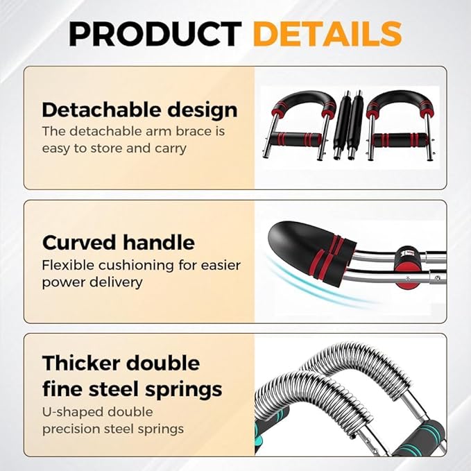 • Efficient & Portable Exercise: Whether you are a beginner or a professional athlete, It can help you with strength training, simple and practical. It's detachable, doesn't take up space, and you can use it to keep your muscles up when you're outdoors, traveling, in the office, or at home. It's a great addition to your gym. 10 min/ time,4 times/week, will give you perfect muscles.