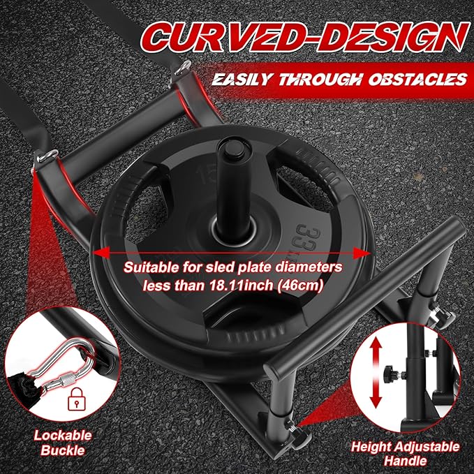 • Innovative Design - The weight sled features an arc shape design for easy over obstacles, it can better protect the training ground. The design of the adjustable height handle can meet different training pose needs. It's ideal for football training, strength exercises, or speed and power fitness training.