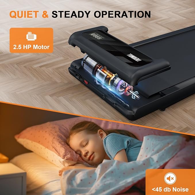 • Powerful Motor: This treadmill features a robust 2.5HP motor that supports users up to 270 lbs, delivering reliable performance for both walking and running workouts. Experience the strength you need to elevate your fitness routine.