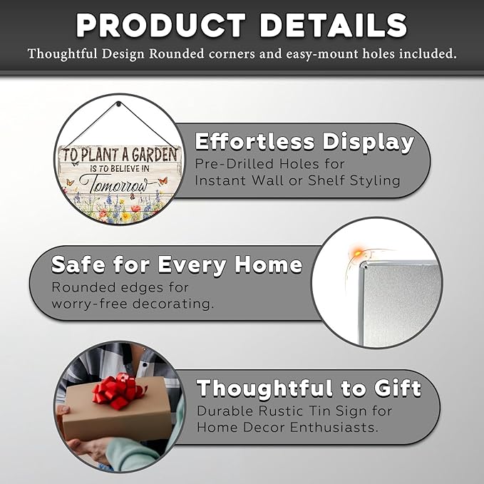 Gardening Vintage Metal Sign Plaque To Plant A Garden is To Believe Tomorrow Sign for Home Greenhouse Living Room Bedroom Outdoor Decor 12 * 16inch