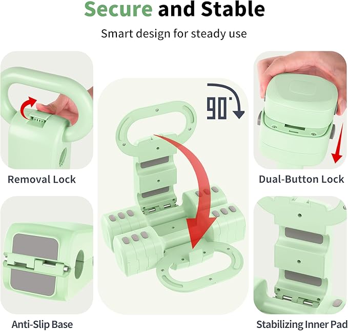 • ?�Precision Locking Technology?‘The weight block of the adjustable dumbbell features a rigorously tested dual-button release system to deliver secure connections. The reinforced latch on the kettlebell converter maintains rock-solid stability during workouts.