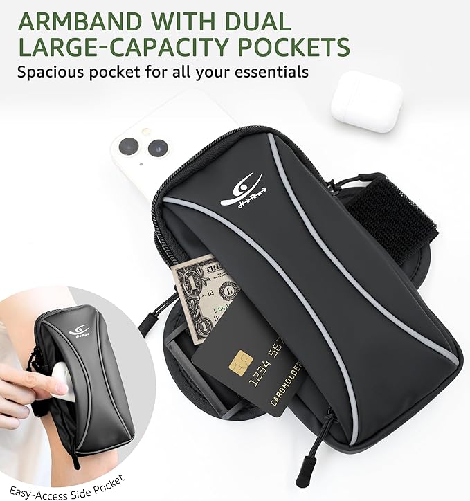 • Dual Large-Capacity Pockets: Carry all your essentials with ease thanks to the spacious dual-pocket design. Easily store your phone, credit cards, cash, and earbuds, so you’re always prepared on the go—whether you’re at the gym, cycling, or out for a run.