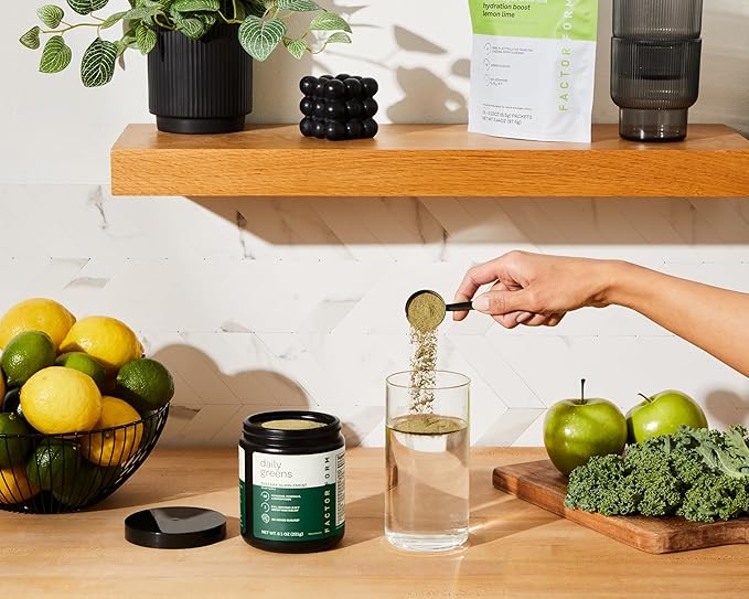 • 40 POWERFUL INGREDIENTS & ONE SERVING OF VEGETABLES FOR DAILY HEALTH – Get your daily dose of greens with Factor Form Daily Greens. Packed with 40 vitamins, minerals, and superfoods, including a full serving of leafy greens, prebiotics, probiotics, antioxidants, and functional adaptogens. This one-step daily formula makes it easy to help fill nutrient gaps and support overall wellness.