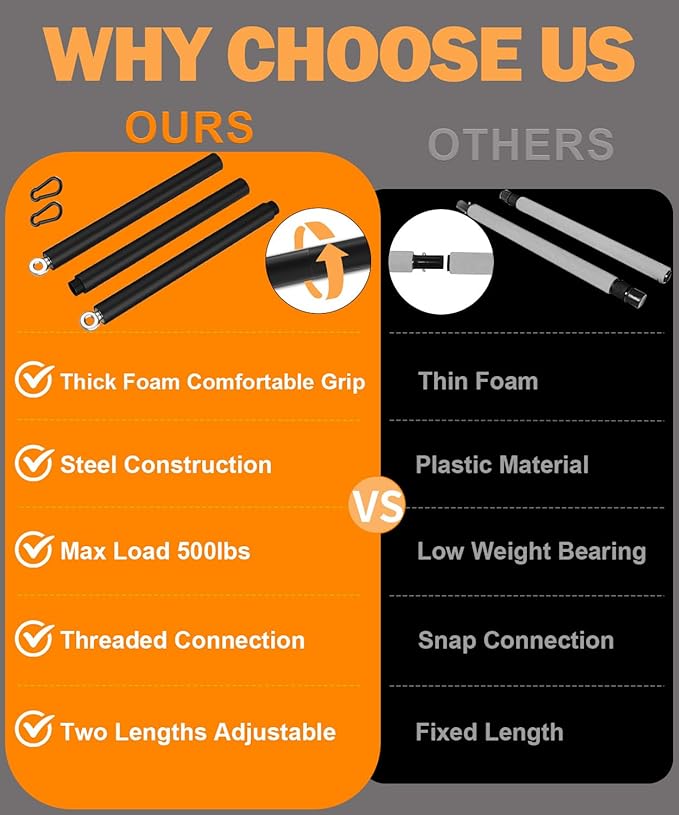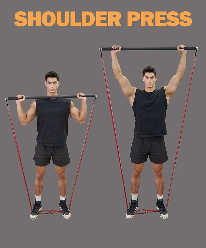 Fitarc Resistance Band Bar Pilates Bar Weighted Bars for Exercise Strength Training Home Gym Fitness Resistance Bar - Adjustable 39" to 26"