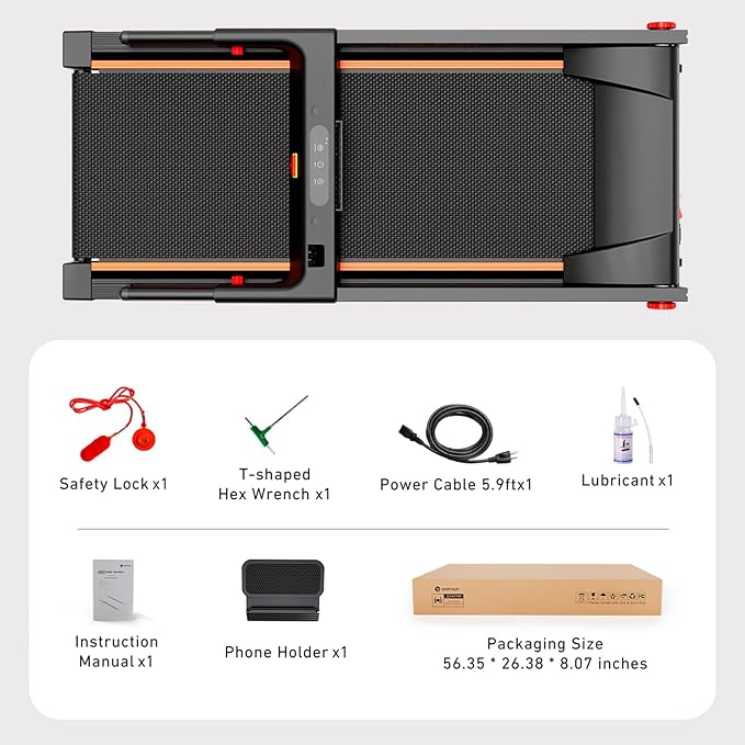 • Instant Usage & Space Saving: Unpack and use instantly. The portable folding treadmill easily moved with transport wheels, it can be conveniently stored under a sofa, bed, or desk. DeerRun company is committed to providing innovative fitness equipment and offers a one-year warranty. We prioritize customer satisfaction and provide 24/7 customer support for any inquiries or concerns.