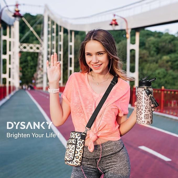 • VERSATILE AND STYLISH CARRIER BAG:The colorful water bottle carrier bag is designed to match the bottle's body, adding a touch of flair while providing practical functionality. The shoulder strap and carabiner make it easy to carry and hang, whether you're out on a hike or running errands. Plus, the small storage bag for your phone and a hook for keys make this bottle even more versatile.