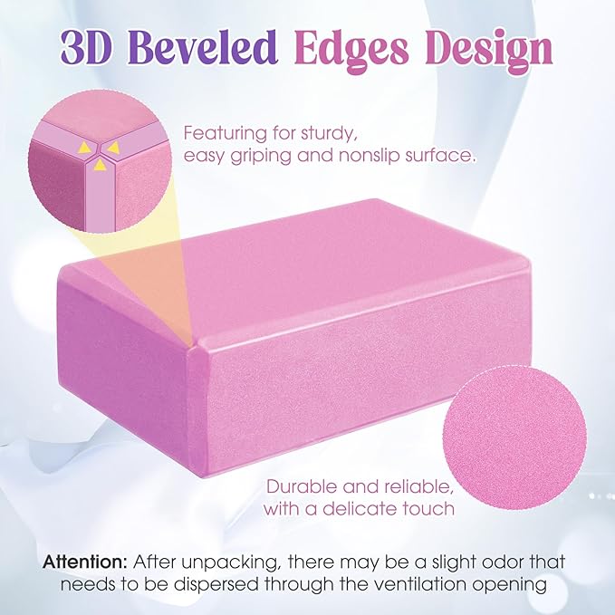 • Products Include: you will receive 5 pcs yoga accessories starter kit, including 2 pcs yoga blocks, 2 pcs yoga pads, 1 pc yoga strap; Warm Tips: after opening the packaging bag of the yoga block, there will be some smell, which can be placed in a ventilated place for about 1-2 days, and the smell can dissipate