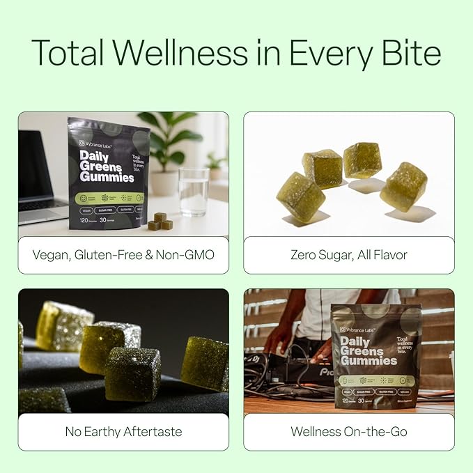 Daily Greens Gummies – Vegan, Sugar-Free Superfood Blend with Prebiotics, Probiotics & Enzymes | Gut & Immune Support, Natural Energy | Mixed Berry Flavor | 120 Gummies | Non-GMO, Gluten-Free