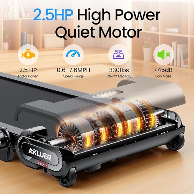 • 【2.5HP Powerful Motor&0.6-7.6Mph Speed Range】Finehorse walking pad treadmill is equipped with a 2.5HP motor, which is stable and reliable, with a maximum weight capacity of 330 pounds and a speed of 0.6-7.6Mph. The 0.6-7.6Mph speed range can meet the need of exercise such as climbing, walking, jogging and running. Wireless remote control, easily adjust to the appropriate slope.