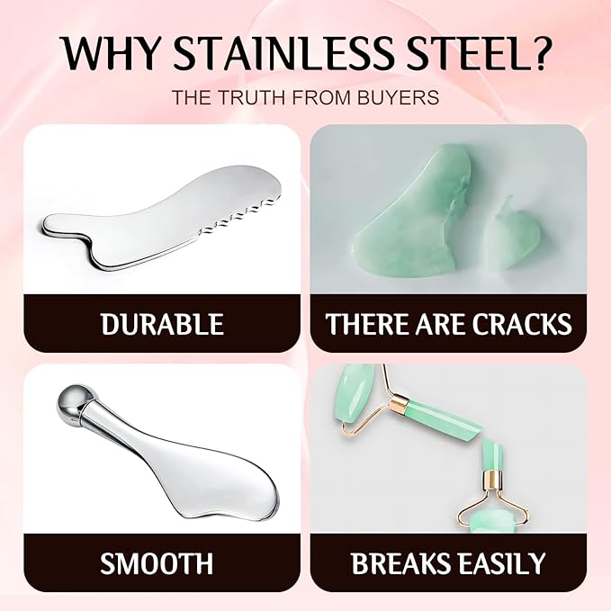 • 【Sturdy And Durable】This gua sha tool for face and stainless steel face roller are made entirely of metal, offering a cooling, refreshing feel that elevates your skincare routine. Ideal for those who love high-quality face massager tools