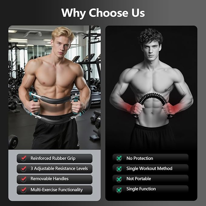 • [Portable Home Gym Equipment] The detachable chest exerciser for men transforms any space into workout area easily. This twister arm trainer outperforms standard chest trainer with its space-saving design. Take your arm workout routine anywhere while maintaining workout intensity. Ideal portable arm and chest workout equipment for travelers needing effective muscle training on the go.