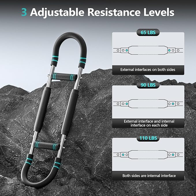 • [Adjustable Arm Chest Trainer]This professional twister arm trainer provides upper body workout machine performance with adjustable resistance(65-110 lbs). The versatile design serves as effective chest workout equipment for all fitness levels, training arm and chest muscles simultaneously. Unlike bulky exercise equipment, it delivers full strength training benefits while saving space. Perfect solution for complete arm and chest workout